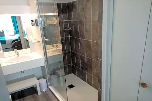 The double room features a carpeted floor, heating, as well as a private bathroom featuring a shower and a hairdryer. The air-conditioned double room provides a flat-screen TV with cable channels, a tea and coffee maker, a wardrobe, a safe deposit box as well as an inner courtyard view. The unit offers 1 bed.